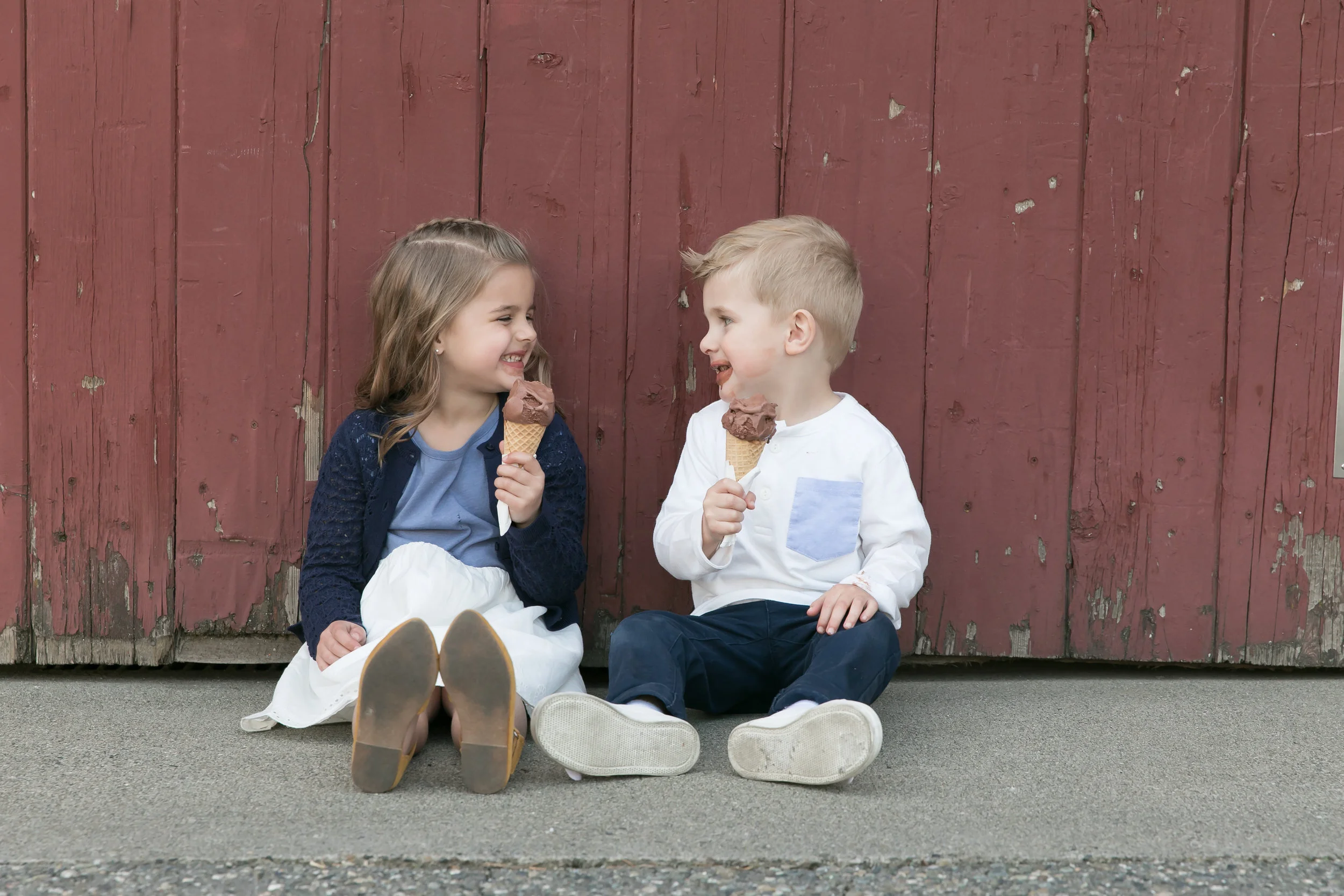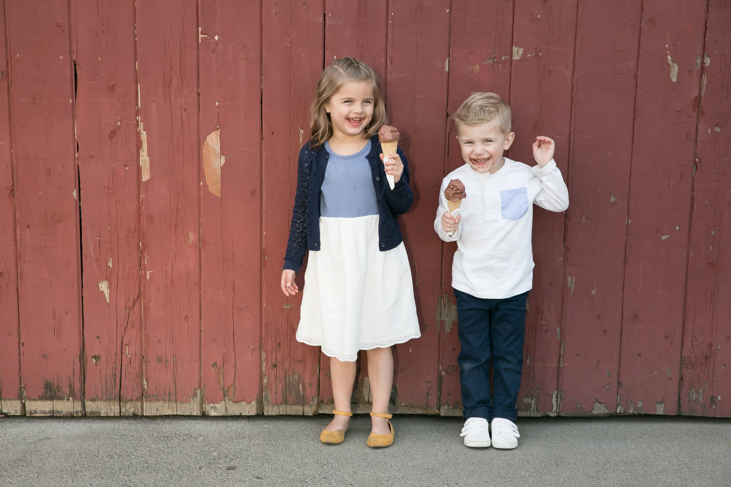 When planning sessions, I start by asking parents I what scenery they love, what scenery will blend if these images become wall art. The answer to these questions helps me sort out the perfect location. I also consider what will help children have fun. The goal is to get the genuine smiles we love from our kids. Mom’s request for this session was that we do something different and fun for the kids. When I think of kids having fun it usually involves ice cream in our house. Turns out it brings fun for these kids also.